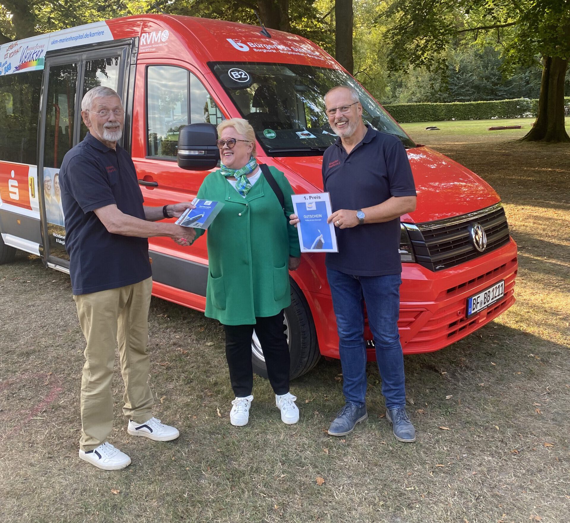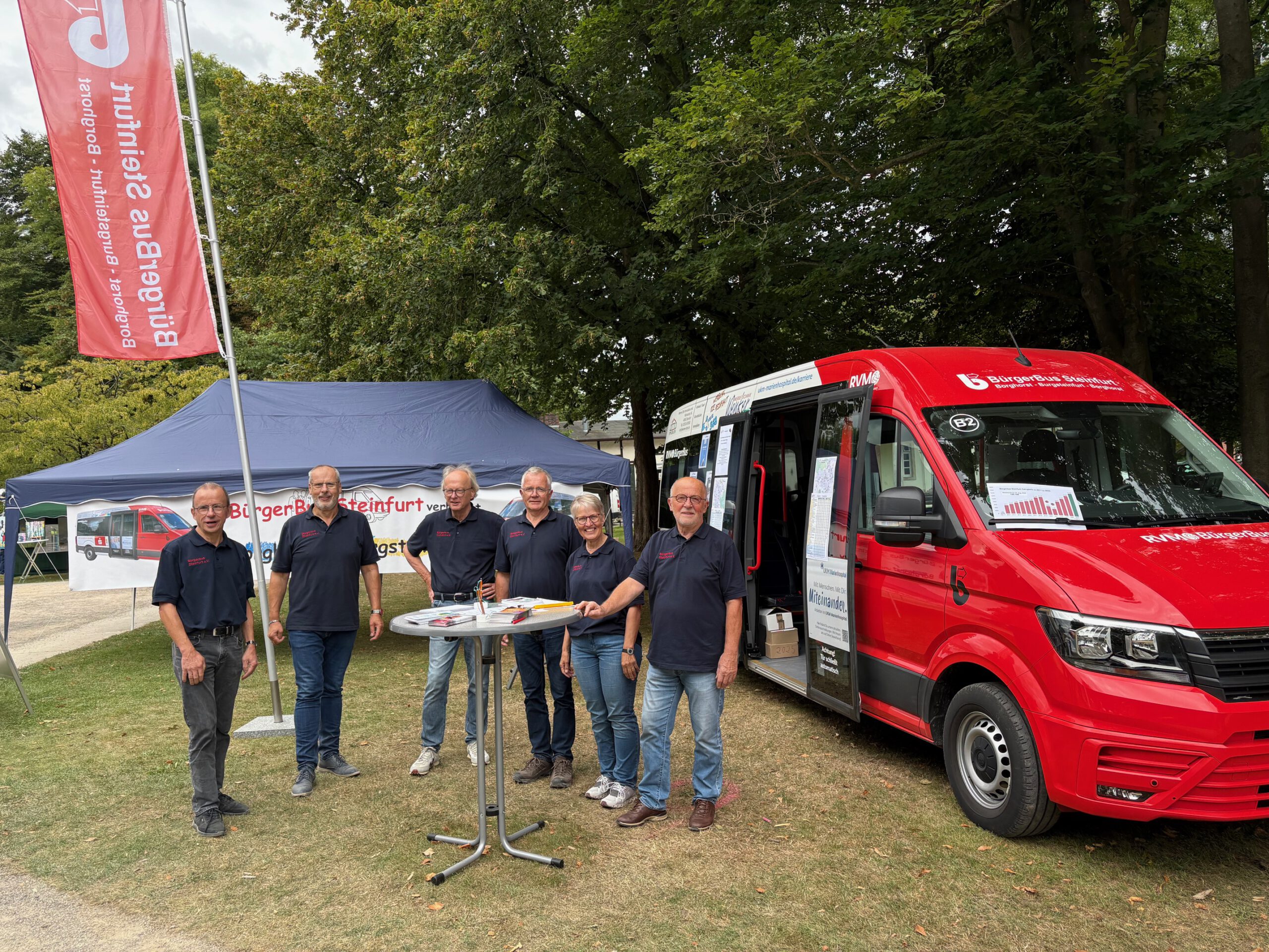 Steinfurt. Sehr erfolgreich war der Bürgerbusverein Steinfurt beim Stadtgeburtstag auf dem Bagno-Gelände: Am Ende der Veranstaltung hatte er vier neue Fahrer für den ehrenamtlichen Dienst hinzu gewonnen. Und unter den vielen Besuchern des Bürgerbus-Stands gab es beim Gewinnspiel drei Teilnehmer, die am Ende zu den Siegern zählten: Lisa Gartlage gewann den Hauptpreis, einen Rundflug mit dem Motorsegler über Steinfurt, Nicole Wrengler erhielt als 2. Preis eine Heißluft-Fritteuse und der 3.Preis, ein Notfallradio, ging Jürgen Risau. Den ganzen Tag über standen Fahrerinnen und Fahrer den Besuchern Rede und Antwort, außerdem gab es reichlich Informationen in Text und Bildern über den Bus.