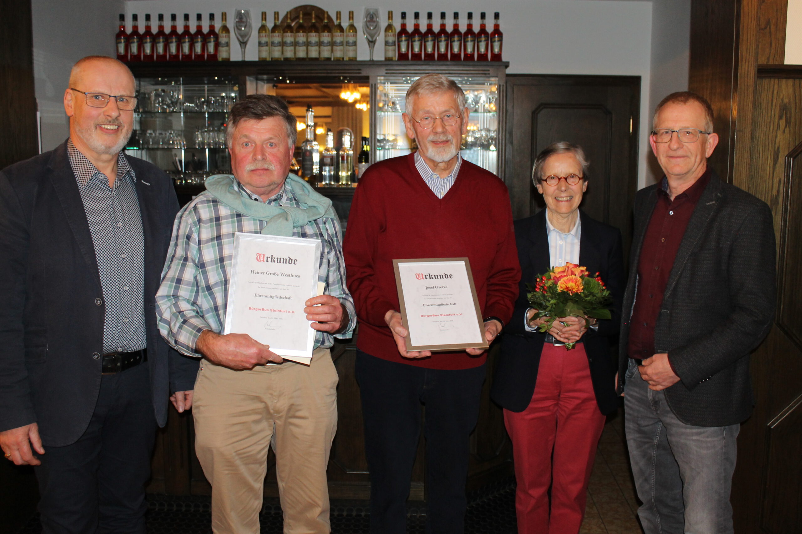 Steinfurt. Auf der jüngsten Jahreshauptversammlung des Bürgerbusvereins Steinfurt in der Gaststätte Börger wurde das Wirklichkeit, was der bisherige Vorsitzende Josef Greive schon vor Jahresfrist angekündigt hatte: er stand für eine Wiederwahl nicht mehr zur Verfügung. Einvernehmlich schlug der Vorstand Werner Sundermann als Nachfolger vor, der einstimmig gewählt wurde. Und auch ein weiterer Wechsel auf der Position des stellvertretenden Fahrdienstleiters ging einstimmig über die Bühne: Ralf Bocker löste den erfolgreichen Vorgänger Heiner Große Westhues ab. Beide Männer wurden für ihre erfolgreiche Arbeit mit der Ernennung zu Ehrenmitgliedern gewürdigt.